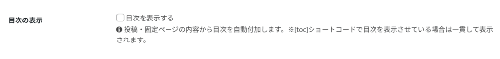 目次タブで設定した内容は、ショートコードで目次を表示させる際にも反映されます。