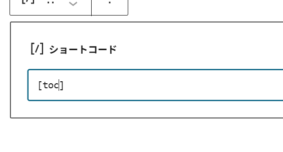 ショートコードのコード入力箇所に半角で[toc]を入力して、完了です。