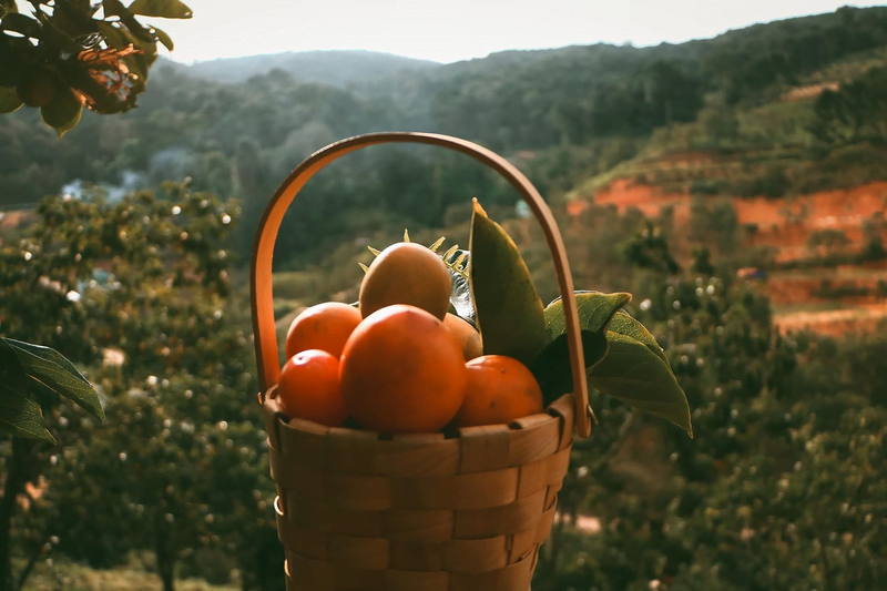 写真は庭で育ったフルーツを収穫した後のものですが、